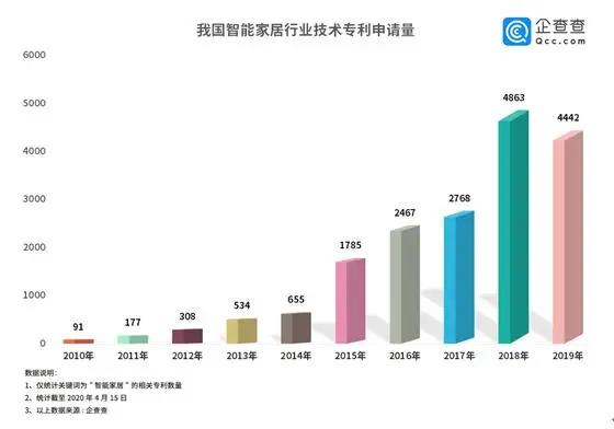 潛力巨大的“藍海”市場早已廠商云集,智能家居行業(yè)技術(shù)專利申請量迅速攀升。企查查數(shù)據(jù)顯示,我國智能家居相關(guān)專利申請總量早已破萬,2015年開始我國智能家居行業(yè)技術(shù)邁入快速發(fā)展期,2018年達到巔峰,數(shù)量達4863件,較2017年同比增長了76%,2019年專利申請數(shù)稍減。由此可見,智能家居市場競爭較為激烈,各路玩家步伐急促。