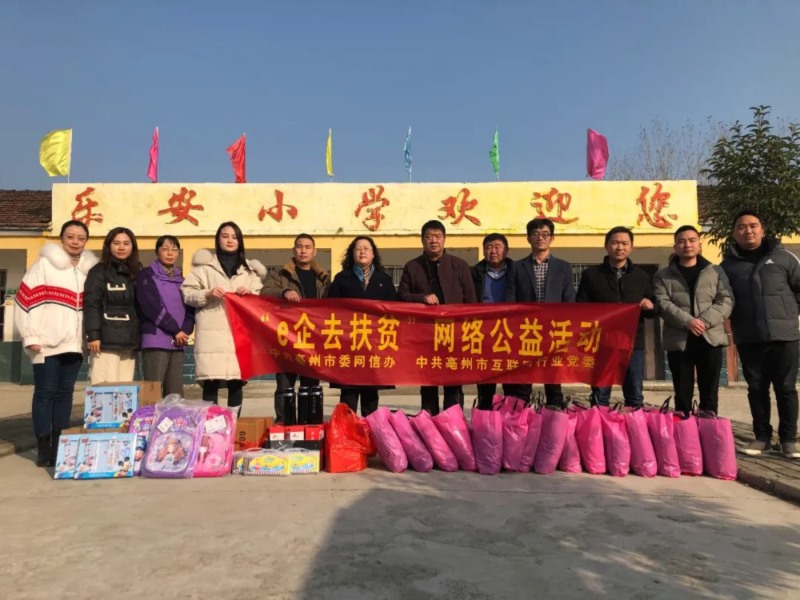 12月4日,由亳州市委網(wǎng)信辦、亳州市互聯(lián)網(wǎng)行業(yè)黨委組織開展的“e企去扶貧”網(wǎng)絡公益活動,走進利辛縣鞏店鎮(zhèn)樂安小學。